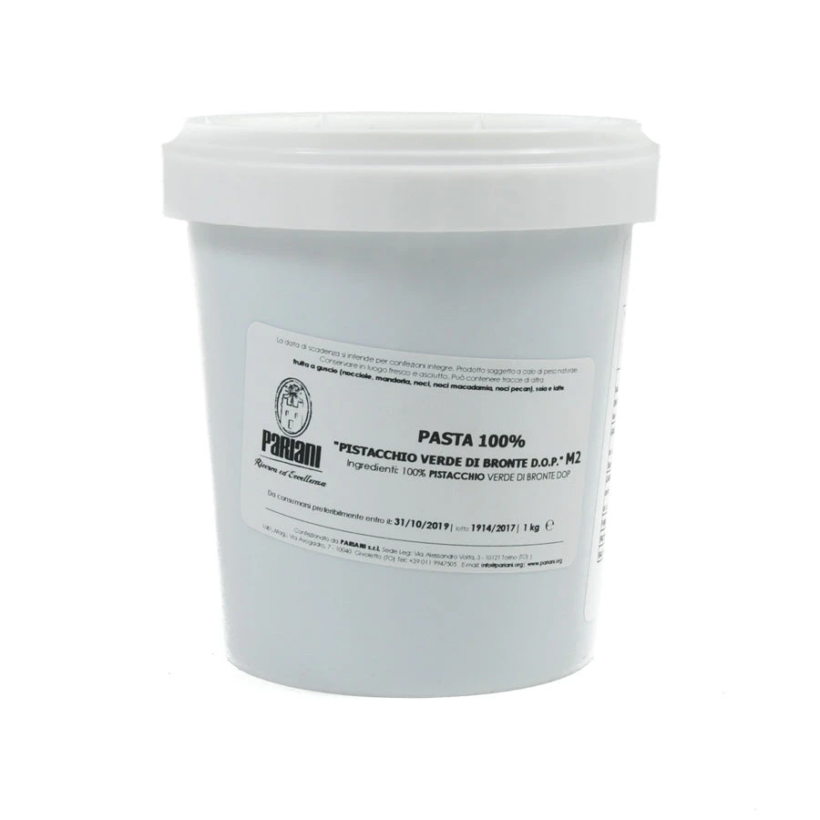 Bronte DOP pistachio paste is an ultra-smooth nut paste made with one of the world’s best varieties of pistachios. Bronte DOP pistachios are so sought after, they’re also known as Sicily’s ‘green gold’.