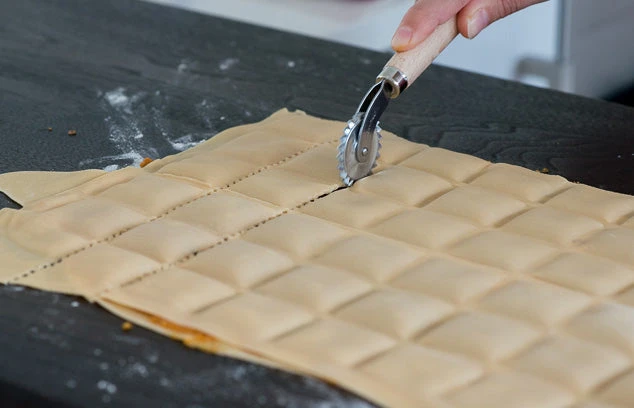 Ravioli making comes into its own with a ravioli rolling pin used to quickly and efficiently shape and seal ravioli from sheets of fresh pasta. Modelled on the original rolling tool used in Ligurian kitchens, the roller is crafted from beechwood making it hard and durable. The complete pasta making kit also contains ravioli stamps with beautiful beechwood handles. And if you’d prefer to think outside the box and shape your own ravioli the fluted pastry wheel can be used to create soft, waved edges out of homemade pasta.Â