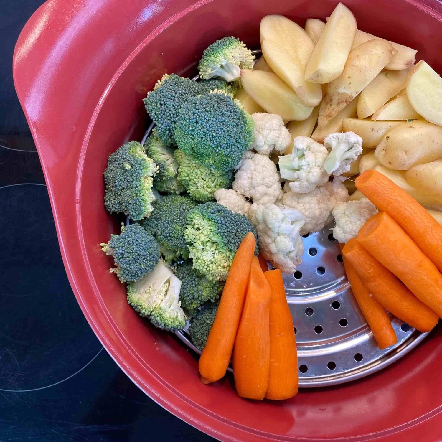Cookut’s stainless steel steamer basket is a healthy way to cook fish and vegetables. This steamer basket – designed to work with Cookut’s Dutch oven – has two levels. Layer small, flat pieces of fish on the bottom layer, and fill the top basket with vegetables, or larger pieces of fish. With an integrated sieve, this steamer basket doubles up as a couscous cooker, too.Â