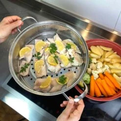 The Affinity casserole pan is made from multiple layers of magnetic stainless steel with an aluminium core. Heat is conducted throughout the entire pan – sides included – for faster and more even cooking. It also reacts very quickly to changes in temperature, so it heats up fast and stops cooking almost as soon as you remove it from the heat.