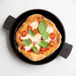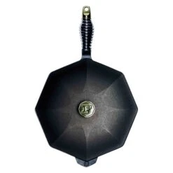 The pan has a rolled lip for easy pouring with reduced drips. The ergonomically designed handles are cast from stainless steel and riveted to the pan for durability. They also stay at a low enough temperature to handle during stovetop cooking.