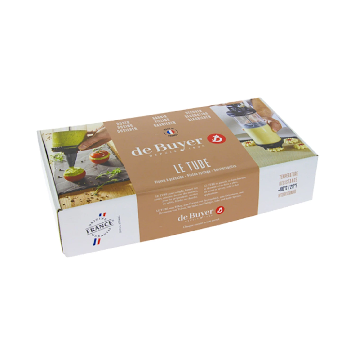 The De Buyer ‘Le Tube’ pastry syringe is the easiest way to get equal-sized cupcakes, profiteroles or macarons. You can even use it with whipped cream, mousse and buttercream.