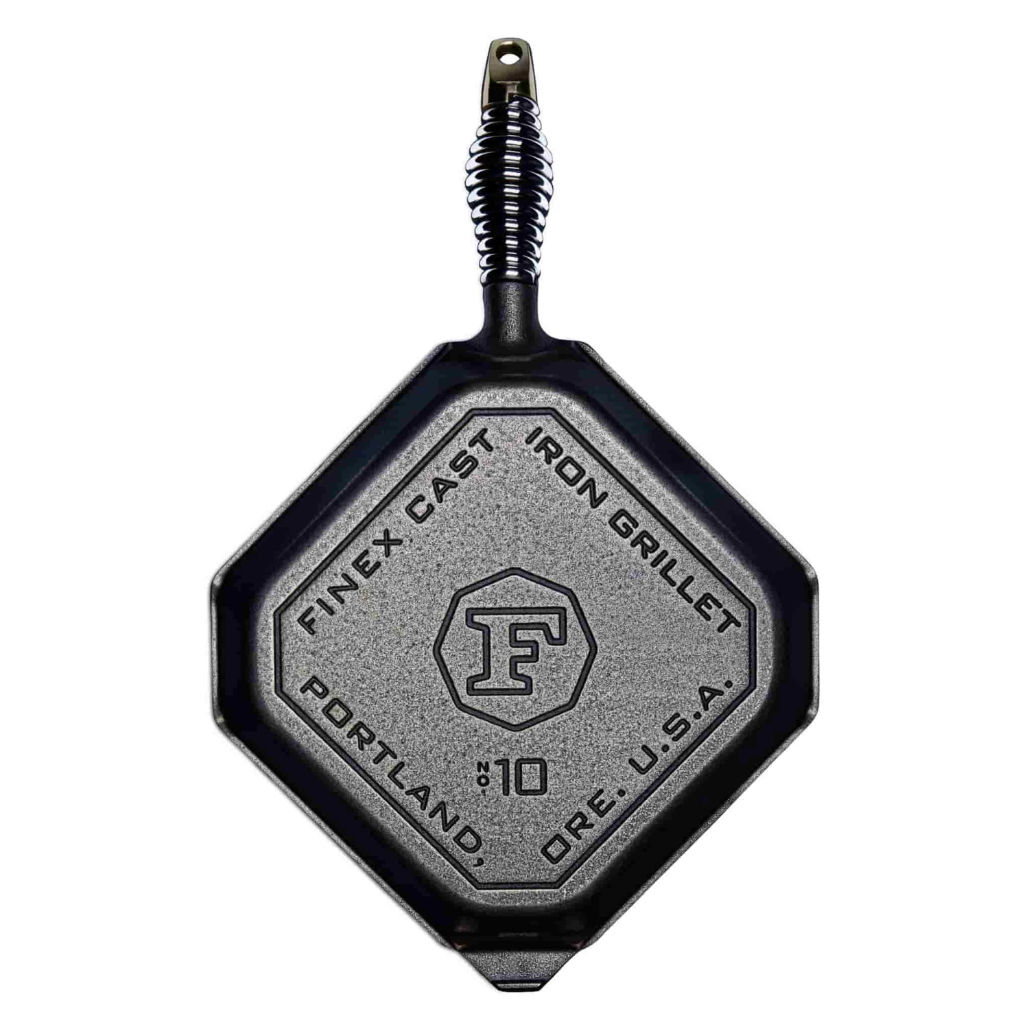 The Finex cast iron grill pan can be used in your oven, barbecue and on all hob types, including induction. It’s pre-seasoned with flaxseed oil, so it’s ready to use straight out of the box.