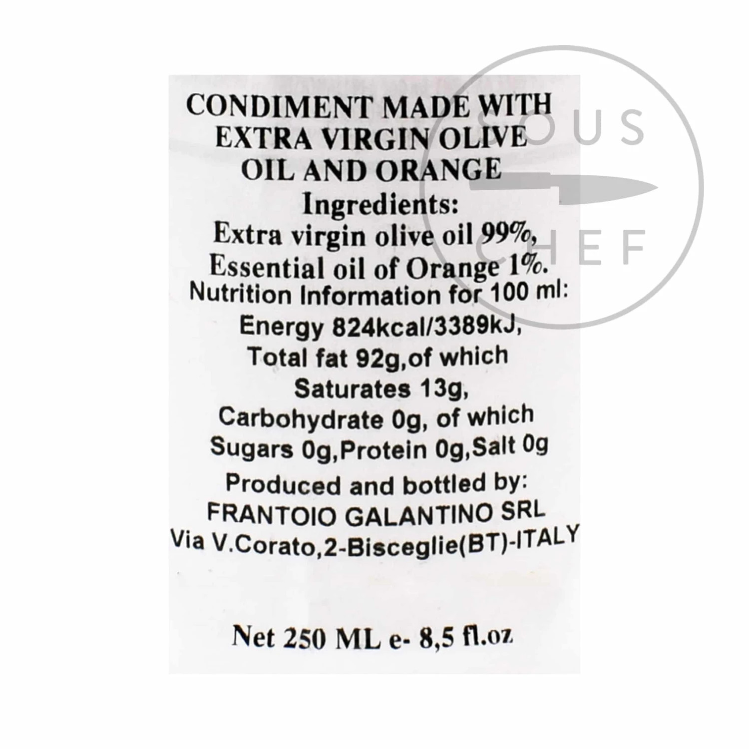 Ingredients: 99% extra virgin olive oil, 1% orange essential oil.