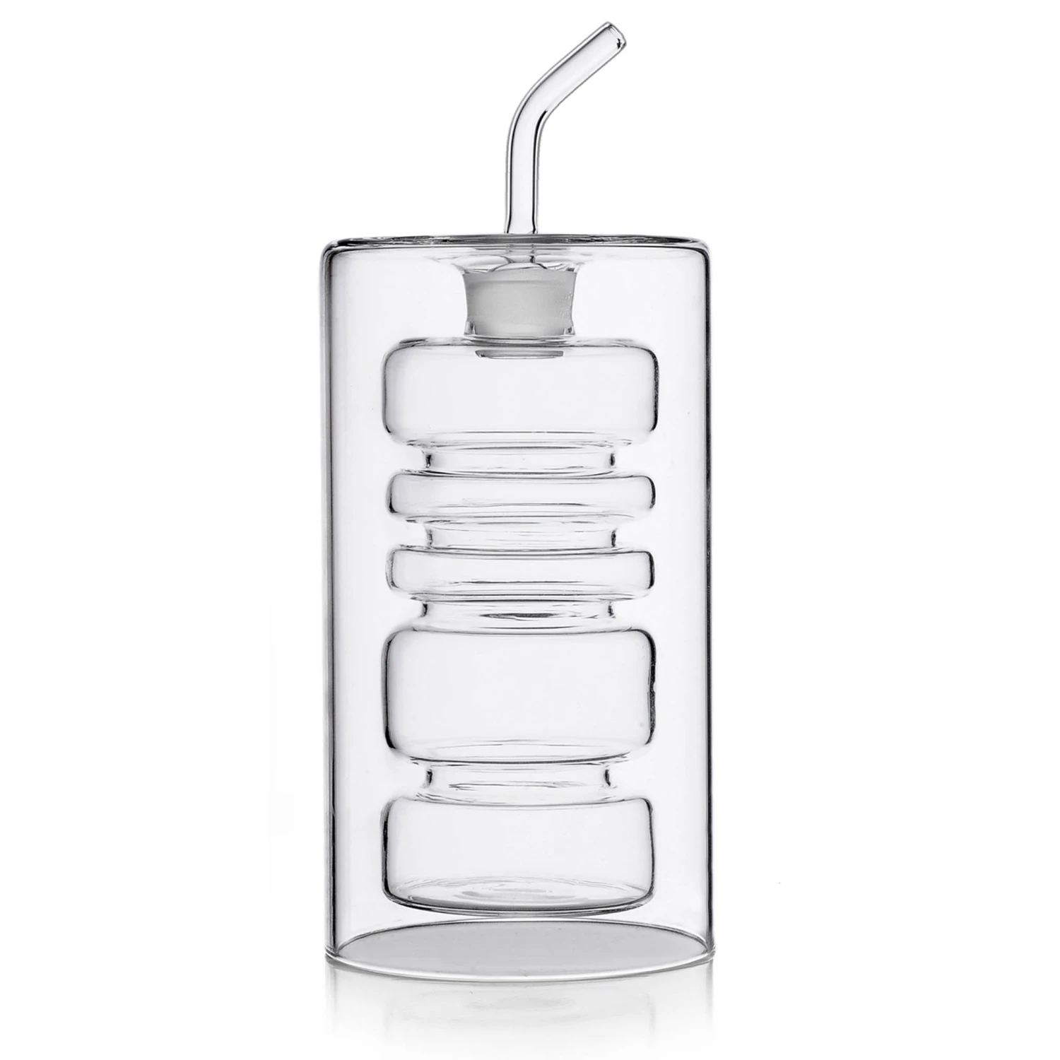 Ichendorf Milano’s large olive oil bottle elevates the way you pour oil. Crafted from 100% glass and made in Milan, this large bottle features a ring pattern, which, when filled with olive oil, creates a stunning design. With a narrow spout, this bottle is easy to pour from and is beautiful to have on show at all times.Â