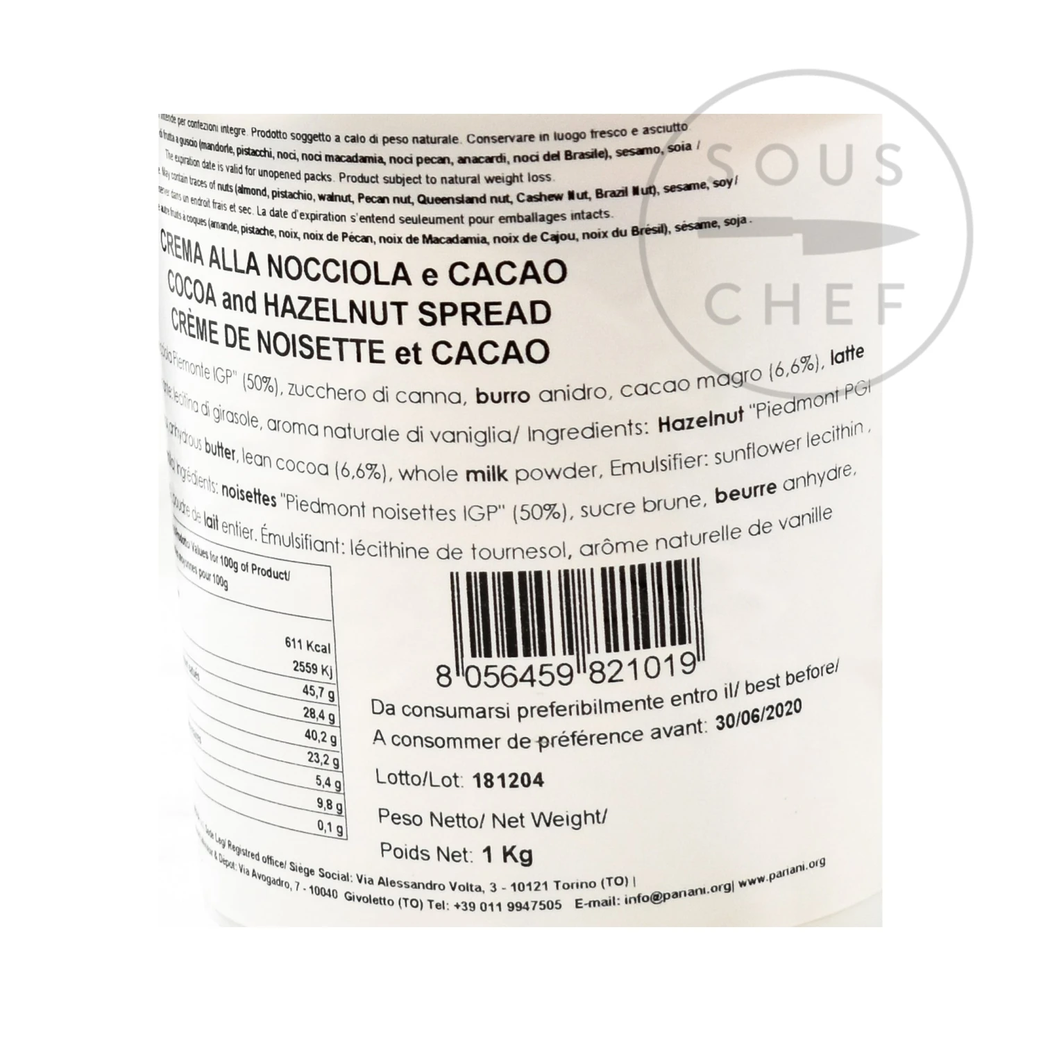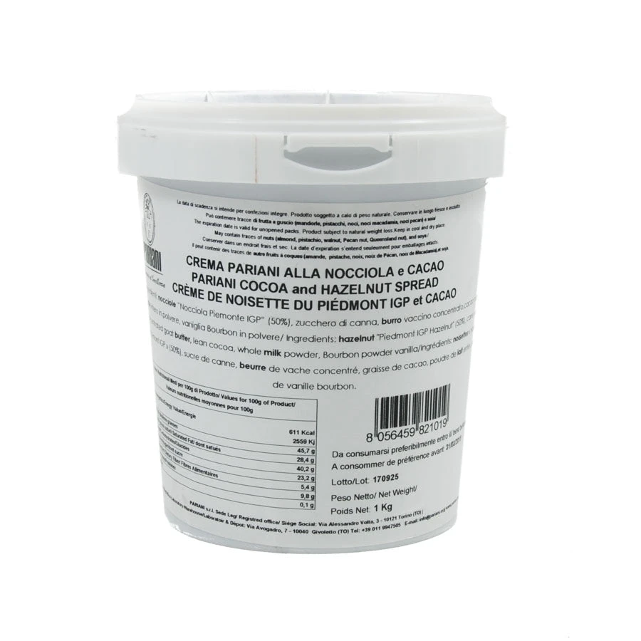 Pariani Italian hazelnut gianduja paste is made with cocoa and Piemonte IGP hazelnuts, often considered the best hazelnuts in the world. The ultra-smooth, nutty chocolate spread is made with a hint of Bourbon vanilla and is an instant indulgent filling for homemade chocolates.