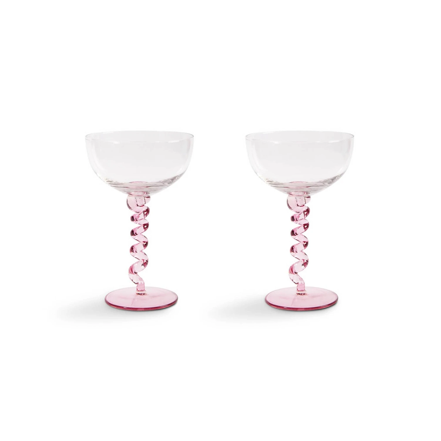 These pretty pink coupe glasses are ideal for celebrating a special moment with a friend or loved one. Whatever the occasion, pop the cork and fill these elegant glasses with chilled Champagne or an English sparkling wine. They’re beautiful to look at, with a clear glass bowl and pale pink spiral glass stem.