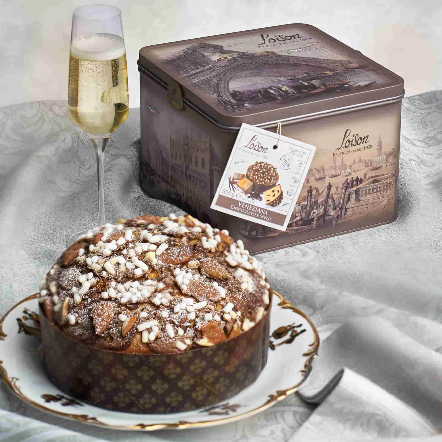 Loison’s exquisite wrapping features images of some of the most recognizable symbols of Venice: the Carnival masks, the Lion of St. Mark and the gondolas in the Grand Canal.