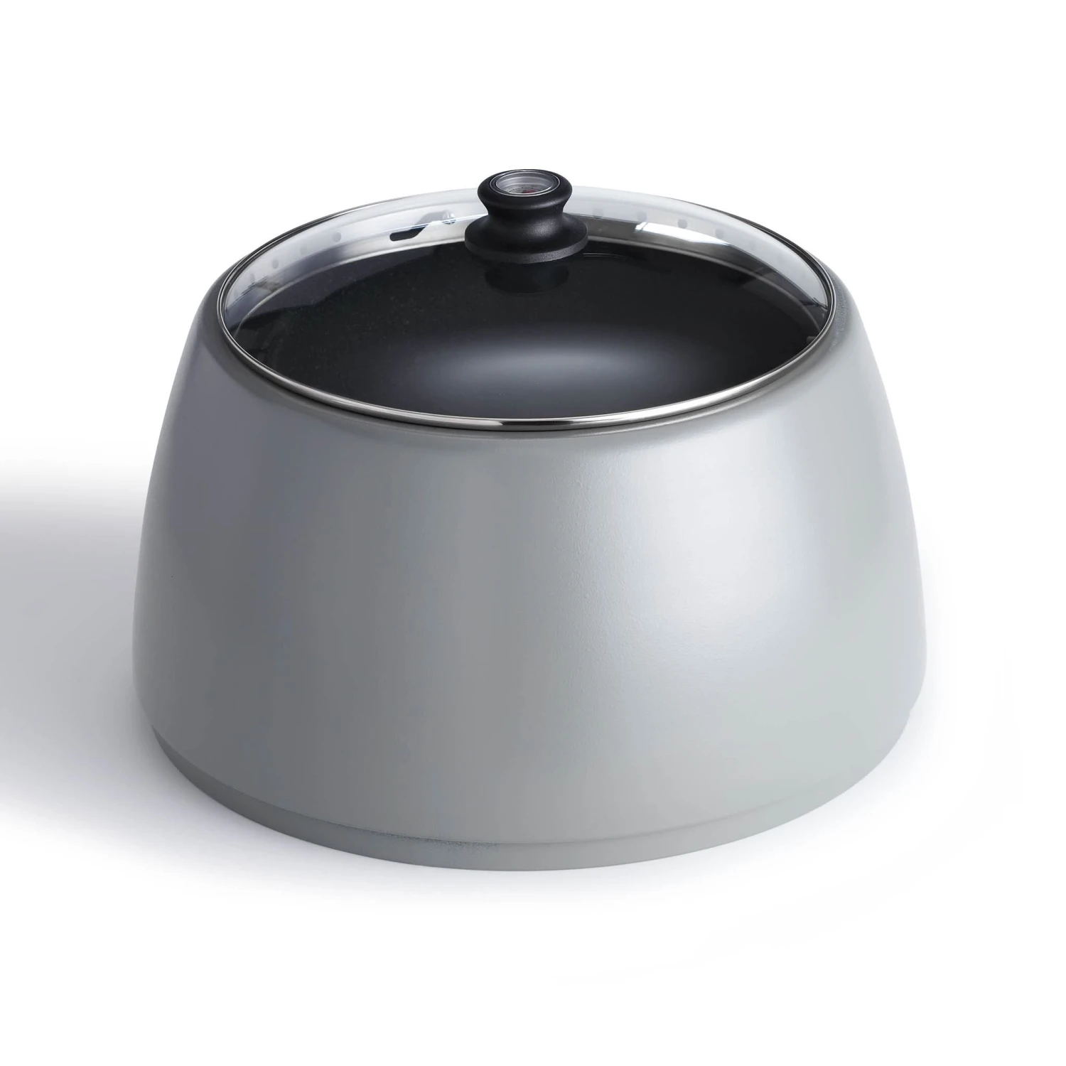 The Lotus Grill glass hood turns your smokeless barbecue into a true all-rounder for outdoor cooking. It fits neatly onto the grill and features an integrated thermometer for easy and accurate temperature reading. You can keep an eye on your food without having to raise the hood and risk lowering the temperature.