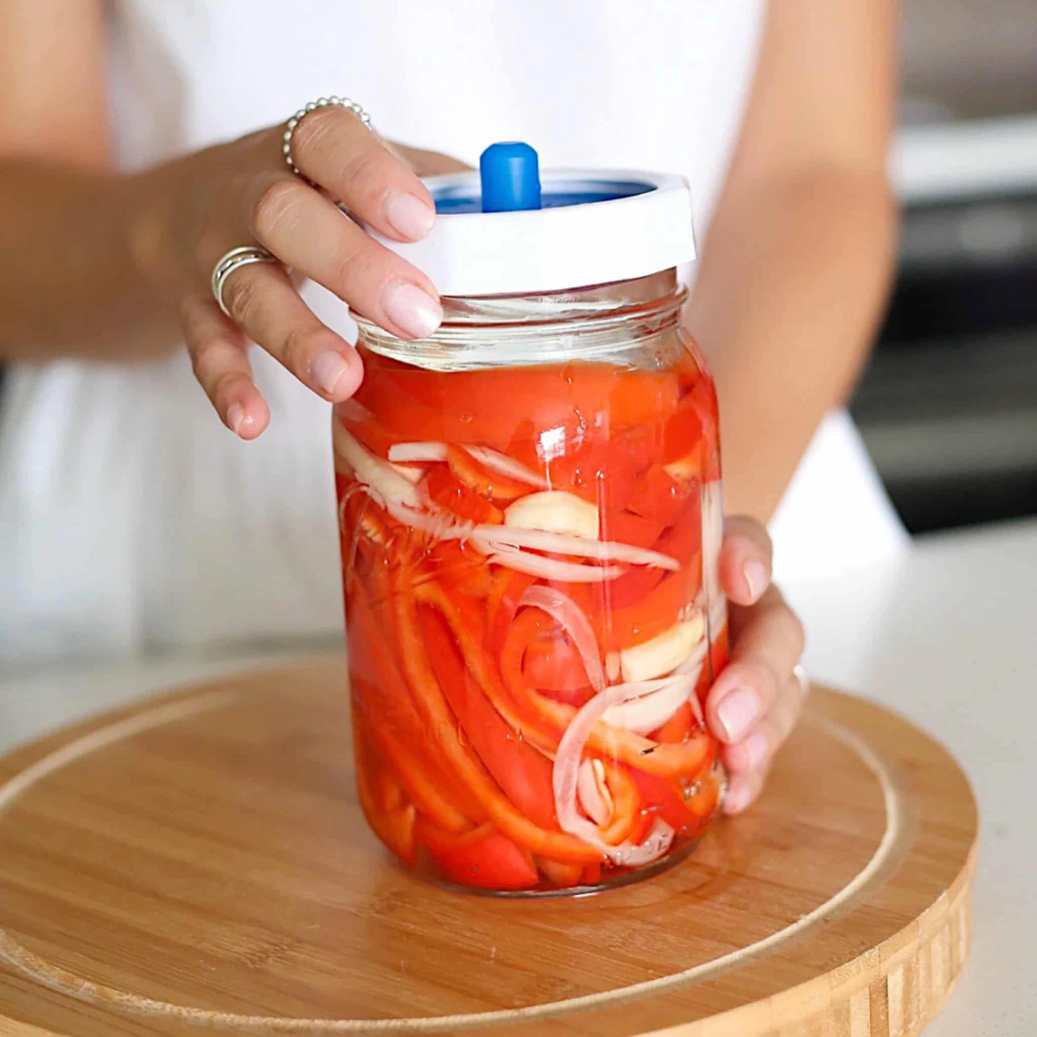 With Masontops wide mouth tough bands, you can create an airtight seal for your vegetable pickles. Made of durable and food-safe plastic, these tough bands won’t rust and can be used on repeat for all your fermenting adventures.
