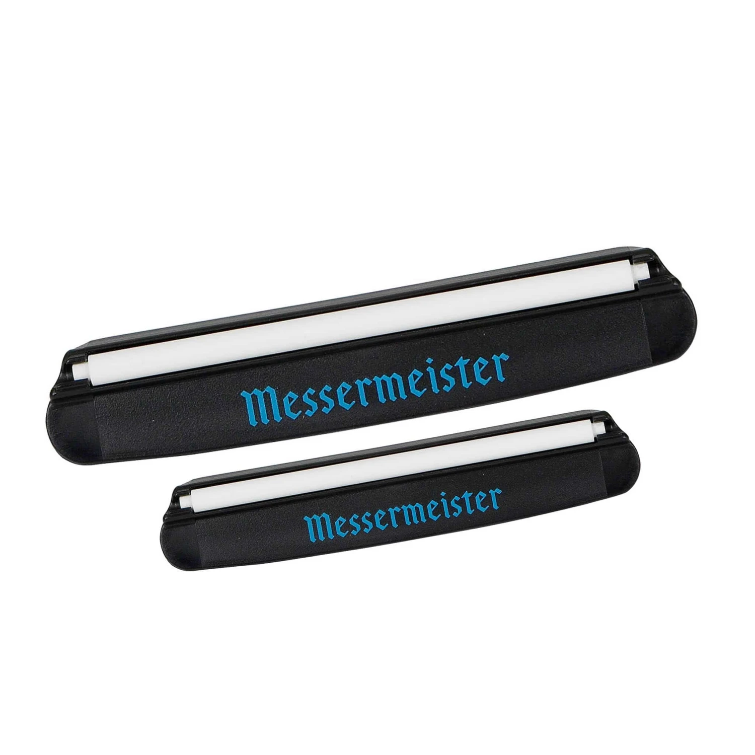Messermeister’s sharpening guide makes whetstone sharpening easy and efficient. The ceramic guides are a simple way to maintain the perfect edge angle when using a whetstone. Clip the guide to the spine of your knife and maintain contact with the stone throughout the sharpening process. The ceramic guide smoothly glides across the whetstone at a precise distance, producing a perfect 15 degree angle.