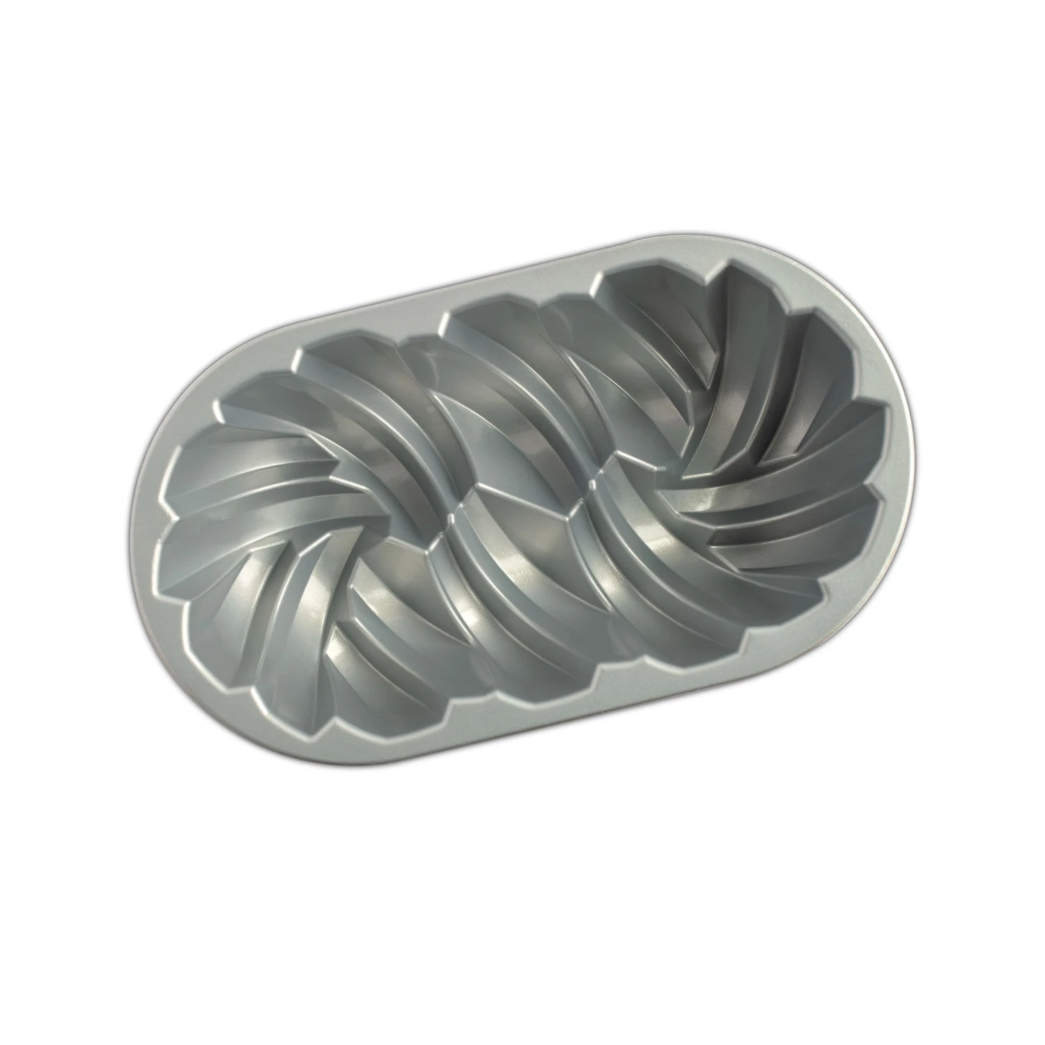 NordicWare’s gold braided loaf pan is this iconic cake tin in an oval-shaped design. This Bundt pan has a simple woven pattern that produces an elegant loaf cake. It creates a detailed braided look on your cake effortlessly. Made from cast aluminium, this cake pan not only produces beautiful cakes but will last a lifetime. This loaf pan is made by NordicWare, the original makers of this iconic Bundt cake.