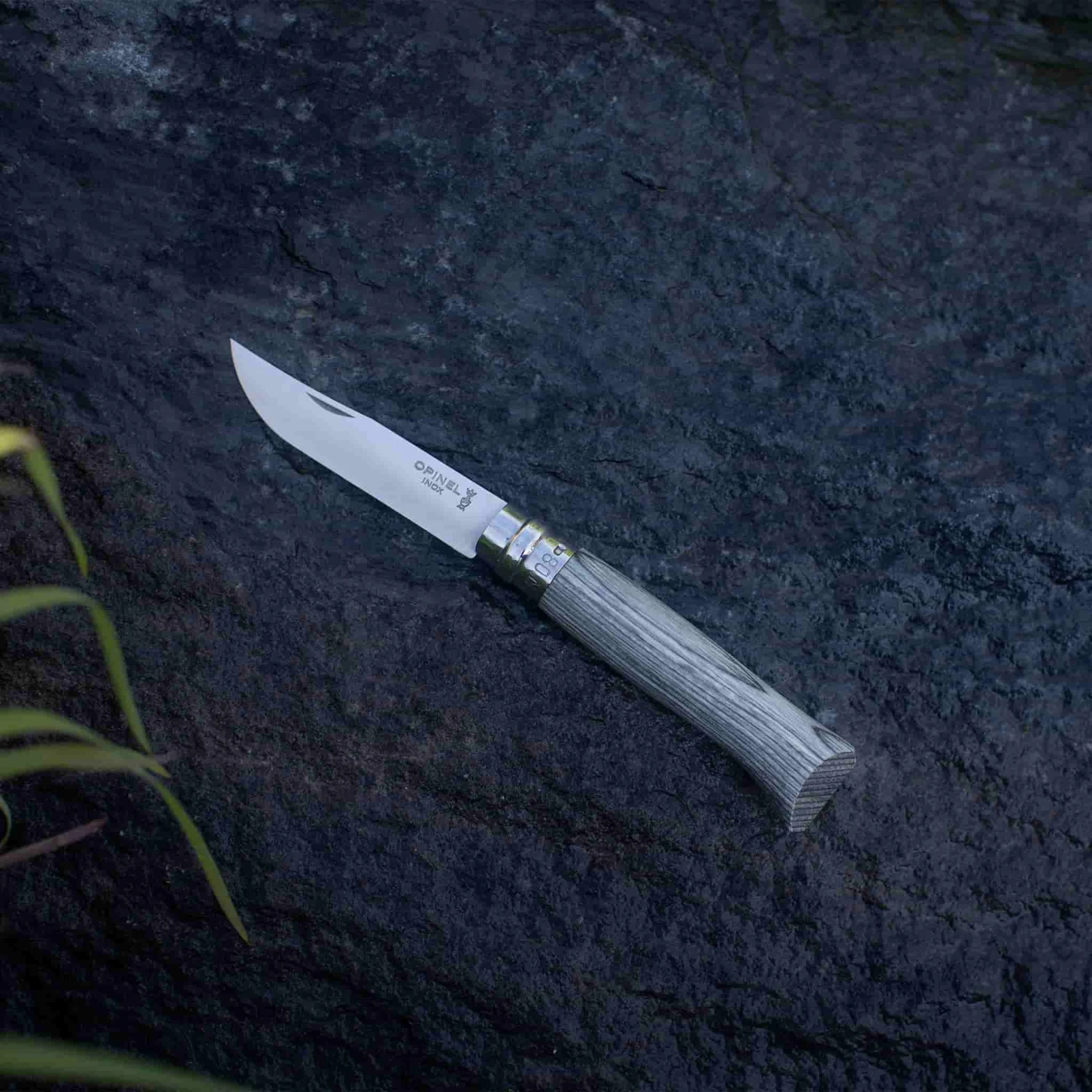 The Opinel grey birch sandvik folding knife is a practical yet stylish essential for camping trips and wild-cooking endeavours – ideal for cutting, chopping and slicing anything from vegetables to smoked meats. The folding blade means you can safely store and carry this knife wherever your adventure might lead.
