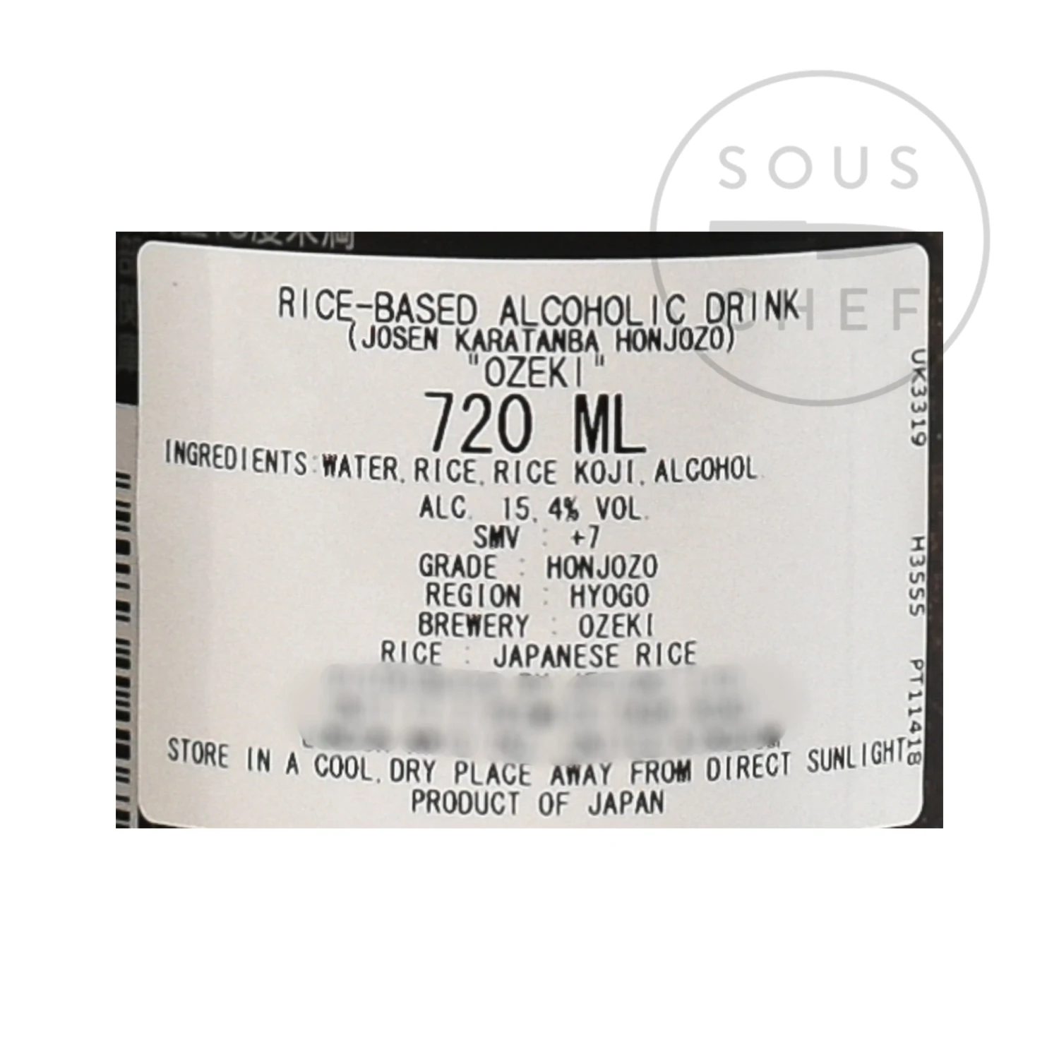 Sake is a Japanese wine made from fermented rice, and is often referred to as rice wine in the West. This style of sake would usually be served chilled between 5-10°C, or gently warmed as ‘kansake’ to 40-46°C in a small carafe (‘tokkuri’). Producer Ozeki has been brewing sake since 1711 in Hyogo, central Japan, one of the most famous sake regions in Japan. Â