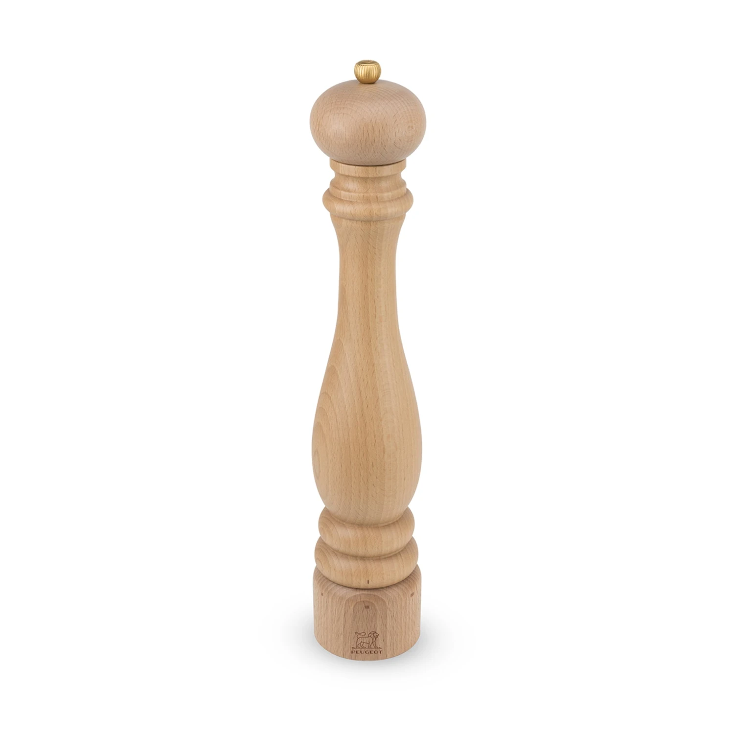 Peugeot Parisâ natural pepper mill lets you season dishes in showstopping, French bistro or Italian Pizzeria style. This large, 40cm pepper mill is sure to impress when itâs brought to the dining table – use it as a finishing touch to steak sauces or souffleÌs. The polished beech wood is comfortable to hold, with the natural finish looking elegant in every kitchen.