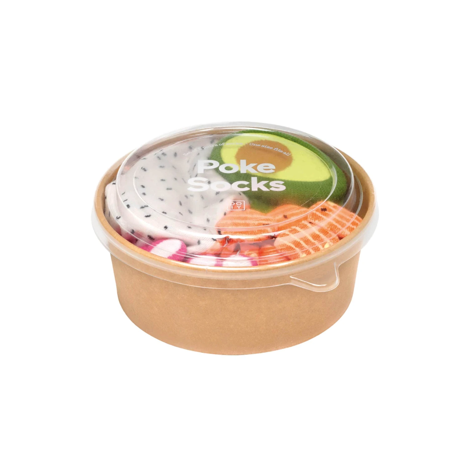 The poke bowl socks gift set is the perfect gift for any lovers of this Hawaiian dish! Containing 2 pairs of unique socks, this set comes in a circular cardboard box just like you would get a fresh poke bowl in.Â