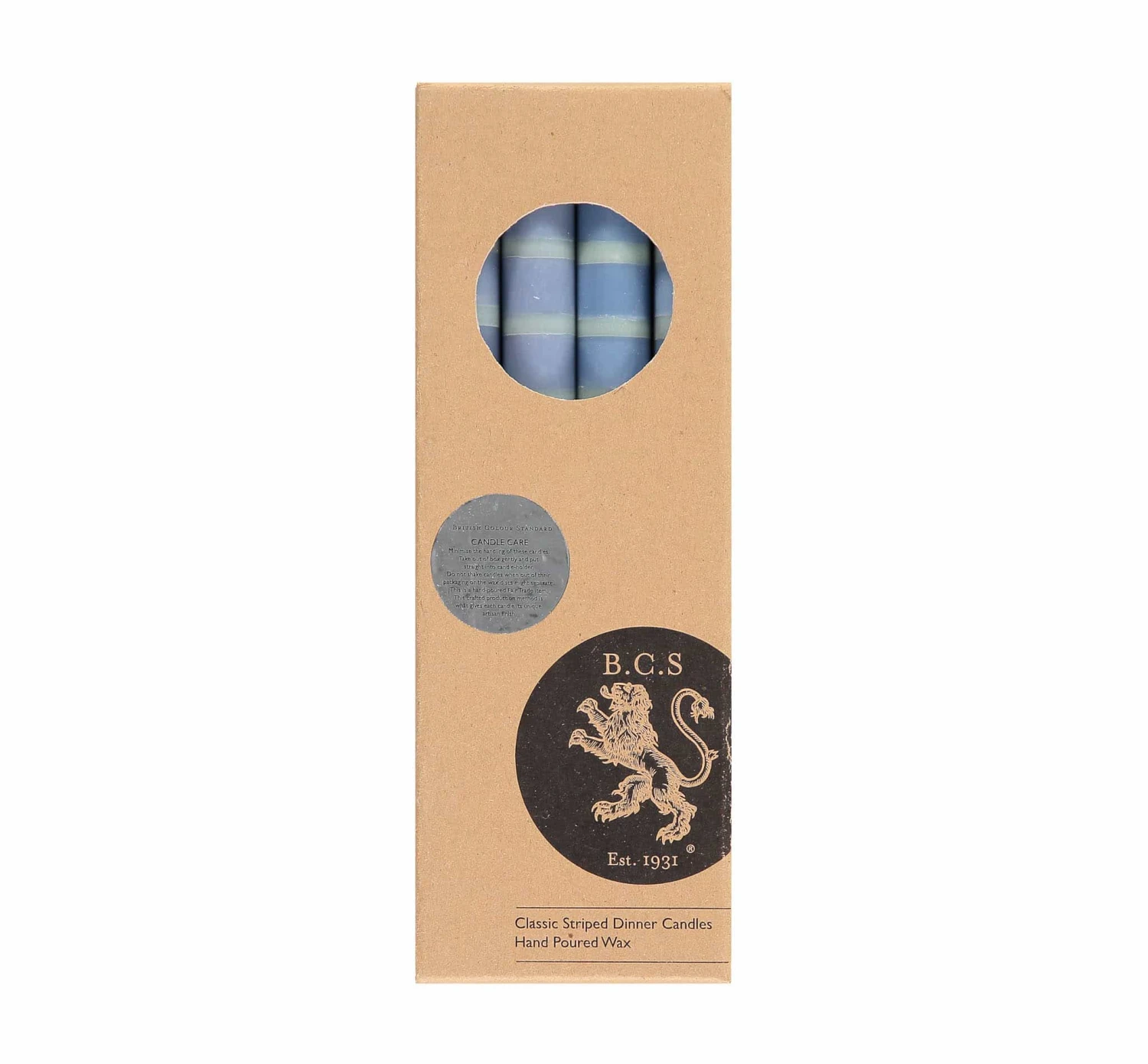 These striped colour block dinner candles are a chic upgrade from classic tea lights. In shades of mint, baby blue and rust orange, these candles have a simple design with bold bands of colour. The candles offer beautiful complementary tones of the British Colour Standard’s spectrum of 1930s shades.Â