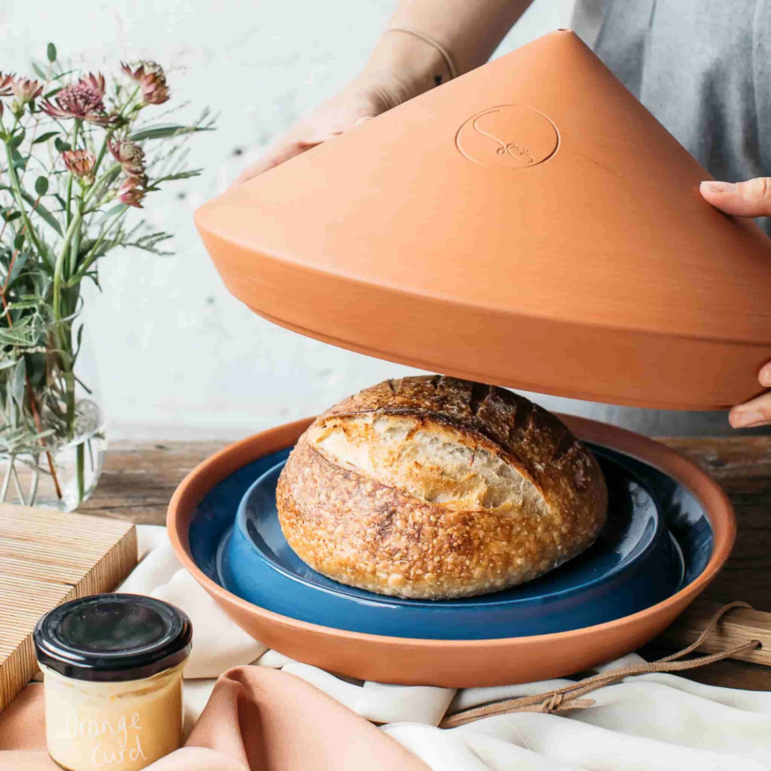 Designed and developed in Britain, the Spring Oven is a terracotta ovenware pot for baking bread with the use of steam. Baking with steam helps your dough rise and develop a crunchy crust, but it’s not always easy to create a suitably humid environment in a conventional oven. The Spring Oven solves that problem with a water channel in the base that generates steam while you bake. The sloping lid focuses heat close to your bread and also allows condensed water to run back into the channel.Â